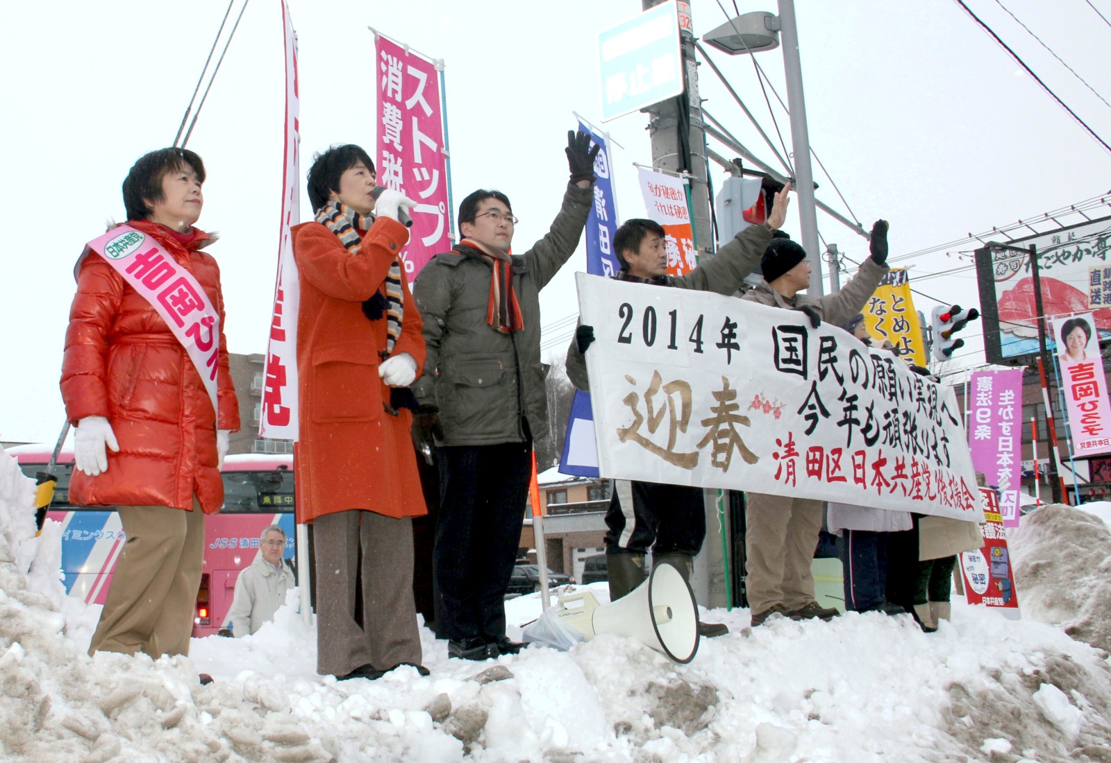 日本共産党北海道委員会は6日朝、札幌駅前で新春宣伝をしました。